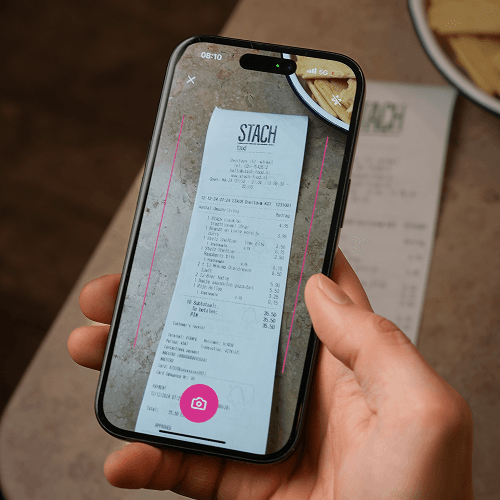 Start een Bonnie via de app en voeg een foto van de bon toe. Bonnie leest de foto met AI en zet de producten klaar voor jouw groep om indidivueel af te rekenen.