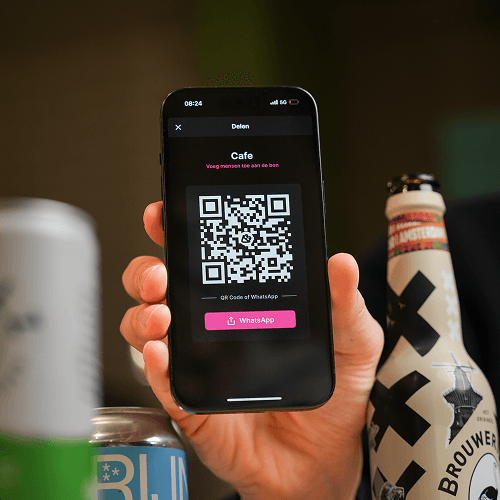 Als je contactgegevens hebt, deel dan de invite link van jouw Bonnie via Whatsapp. Als je geen contactgegevens hebt, gebruik de QR van jouw Bonnie om vrienden toe te voegen.